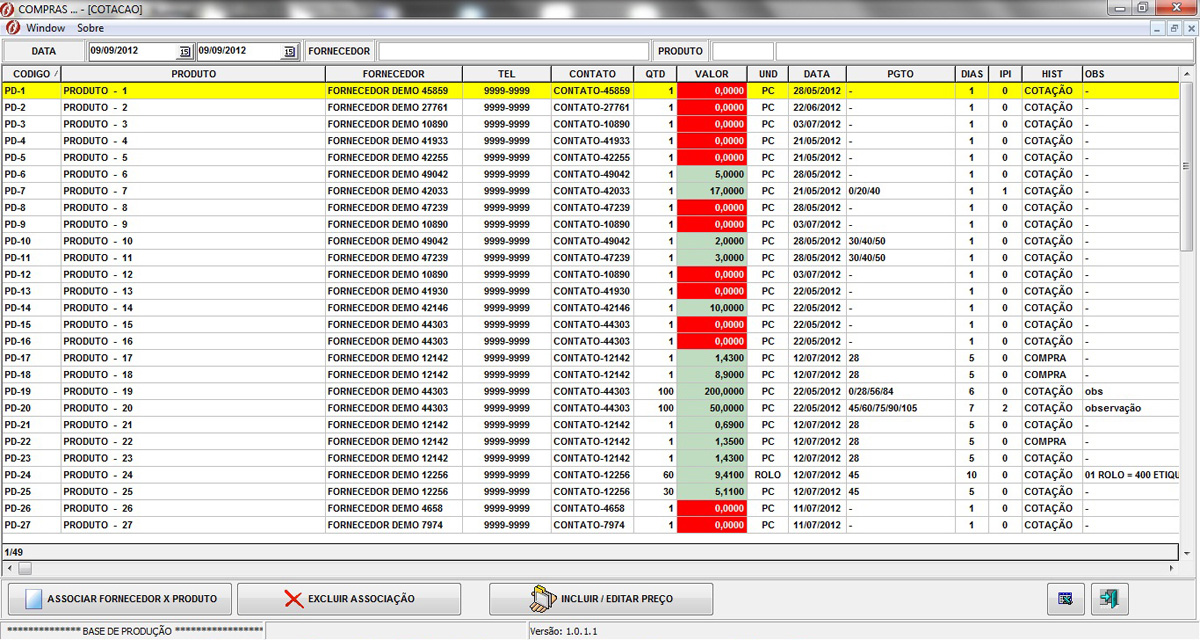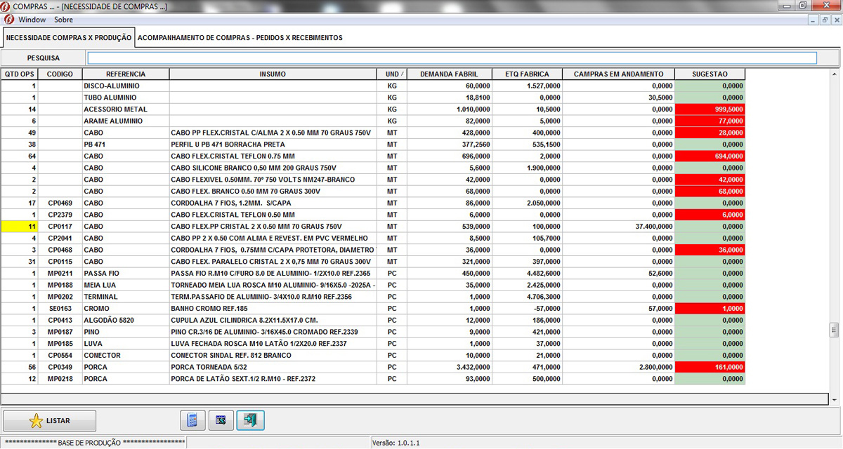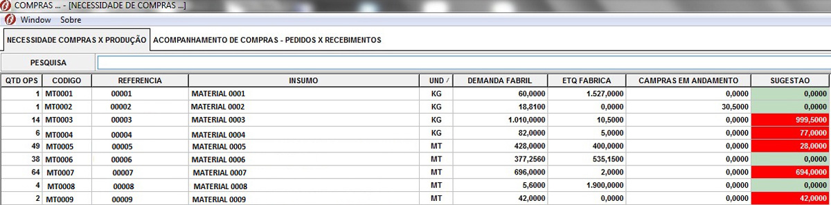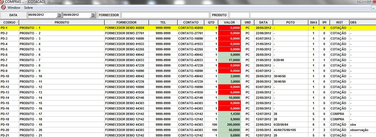 - Avaliação de Fornecedores ( Entrega, Qualidade Produto, Atendimento etc.)